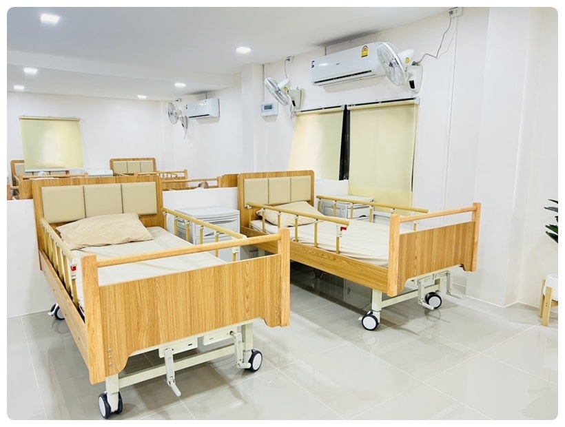 ที่ศูนย์ของเรา เราเชื่อว่าความสุขและความปลอดภัยของผู้สูงอายุและผู้ป่วยคือสิ่งสำคัญที่สุด เราจึงจัดเตรียมอุปกรณ์และสิ่งอำนวยความสะดวกครบครัน เพื่อรองรับการดูแลอย่างมืออาชีพและอบอุ่น